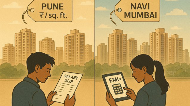 When comparing Pune and Navi Mumbai for first-time buyers, Pune clearly scores higher on affordability, EMI feasibility, and end-user comfort. Navi Mumbai, though slightly costlier, offers proximity to Mumbai and higher rental yield potential—making it attractive for investors and Mumbai-based buyers.