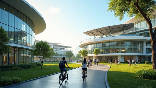 Focus on sustainable buildings integrating solar, rainwater harvesting and smart energy systems.Industry Specific Parks