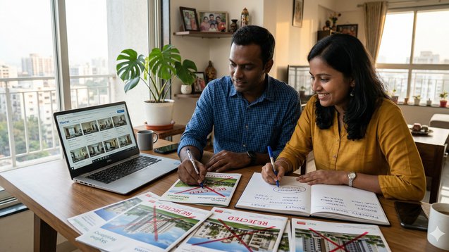 The experience of searching for a home in India becomes familiar to someone who already understands this process. You open a property portal and suddenly there are 300 listings in your budget. The system displays three different types of properties which people can choose from. The system presents three different property options that contain multiple units within various geographical areas at different cost levels which all claim to offer superior quality than other alternatives. The system presents three different property options that contain multiple units within various geographical areas at different cost levels which all claim to offer superior quality than other alternatives. People experience initial empowerment because they believe choice will provide them more beneficial outcomes. People believe that having more choices should increase their chances of success but this assumption does not hold true in every situation. The first tier cities of Mumbai and Bengaluru and Delhi NCR experience decreased market stability because their micro-markets handle excessive property supply. The second tier cities of Pune and Jaipur and Kochi experience continuous growth because their infrastructure development projects begin new construction activities every three months. The third level cities of India experience an increasing number of plotted developments and small builder floor projects. The real estate market experiences an oversupply of housing units. People become overwhelmed because they have to choose between two options. The majority of buyers require five high-quality choices instead of two hundred different possibilities. You should use this method to quickly cut down property choices to half their original number without making any errors. Structured filtering procedures bring benefits of time savings and monetary savings and reduced cognitive load according to my experience as a market advisor who works in multiple real estate markets. The guide provides homebuyers and investors in India with an effective procedure which they can use to create their property elimination process. The procedure enables you to create a better selection process which will help you choose better options without experiencing any anxiety.  Let us create an organized system which will help us handle the disorganized situation.