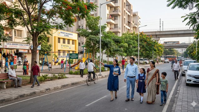 A neighbourhood functions as a community which exists beyond its geographical boundaries. The social atmosphere of an area can influence how comfortable residents feel living there over many years. Some neighbourhoods attract mainly young professionals while others exist as family-friendly areas and retirement communities. Different environments generate distinct patterns of living. The fast-paced communities in Hyderabad and Bengaluru IT park areas attract young professionals who work there. The older residential areas of Ahmedabad and Jaipur provide residents with quieter spaces and stronger community connections. The neighbourhood culture determines whether buyers should stay because they need to stay for their entire life. Residents share social connections through community events which local associations create and public spaces because they exist. The daily living experience receives major impacts from these factors which appear to be minor. Neighbourhoods create better property upkeep through their maintained community environments which also enhance their neighbourhood status.