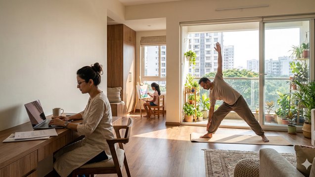 Post-pandemic India has established permanent changes for how homes operate. Many professionals now stay at home to handle their full-time work obligations while pursuing their side jobs and creative activities. The need for multi-functional spaces has become a major requirement. Buyers in cities like Hyderabad Pune and Noida show increasing demand for homes that include dedicated study spaces and adaptable dens and extensive living areas which can be divided into separate sections. The internet infrastructure holds essential importance for this area. Tier 1 and Tier 2 cities usually have reliable broadband options but emerging Tier 3 markets experience inconsistent connectivity which depends on different local areas. The procedure requires testing mobile signal strength and confirming broadband service presence before making a final decision. Many buyers make this basic mistake because they think it does not matter but they end up regretting their decision at a later time. A 2026 hobby-friendly home functions as both a workspace and a personal office space.